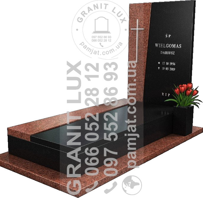 Пропонуємо вам обрати надгробний пам'ятник для вашого близького. Наша команда професіоналів забезпечить повний комплекс послуг "під ключ" - від дизайну до доставки по Волинській області. У каталозі ви знайдете широкий вибір надгробних пам'ятників, що виражають унікальний характер та пам'ять вашого близького. Пам'ятники створені з високоякісного граніту, що гарантує його довговічну якість та естетичний вигляд.
