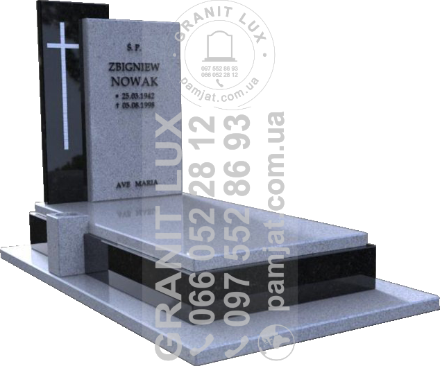 Пропонуємо вам обрати надгробний пам'ятник для вашого близького. Наша команда професіоналів забезпечить повний комплекс послуг "під ключ" - від дизайну до доставки по Волинській області. У каталозі ви знайдете широкий вибір надгробних пам'ятників, що виражають унікальний характер та пам'ять вашого близького. Пам'ятники створені з високоякісного граніту, що гарантує його довговічну якість та естетичний вигляд.