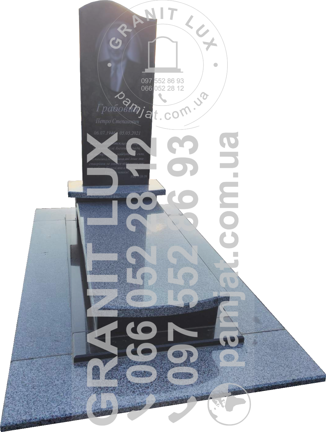 Вишукані та міцні надгробні пам'ятники з різних видів каменю від GRANIT LUX (Ковель, Волинь). Ознайомтеся з нашим каталогом, де представлено широкий вибір дизайнів та стилей. Наша компанія пропонує помірні ціни та доставку по всьому регіону.